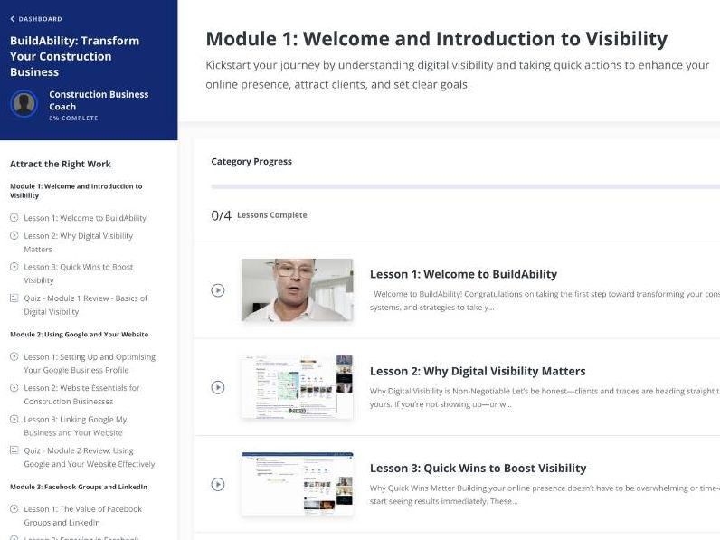 BuildAbility is a step-by-step coaching program built for the construction industry. It’s designed to help you attract the right clients, quote with confidence, and build a team that actually shows up.